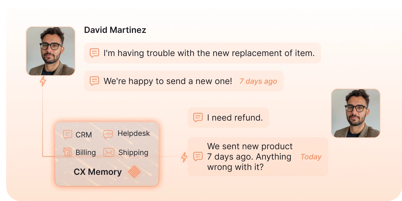 Azeon is an agentic AI built for modern customer support across voice, chat, and email. It sits on top of your existing support stack as an intelligence layer, not a replacement. Azeon understands intent, remembers context, and reasons across conversations. The result is fewer repeat issues, faster resolutions, and a more connected customer experience.